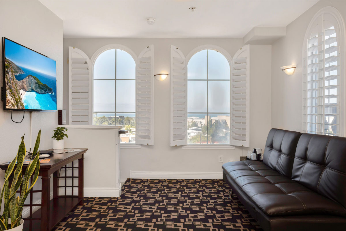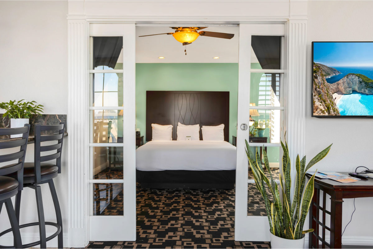 Classic architecture and details like wrought-iron balconies meets contemporary style at this charmer on Highway 101, steps from the beach and less than a mile from Harbor Village. Some rooms have four-poster beds and fully equipped kitchenettes, perfect for your vacation getaway. Each room features free wifi, a flat-panel TV with HD channels and plug-and-play capabilities for your electronics, and spacious work desks, plus plush beds with triple-sheeted bedding. Grab a newspaper and a cup of coffee and enjoy a free Bright Side Breakfast with hot waffles, fresh fruit, and biscuits and gravy. Well-behaved pets are welcome. Per diem rates for government and military are offered based on availability.