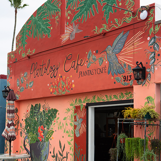 While coffee has long been a cultural obsession, plants have emerged as a new fan favorite in recent years, and Oceanside’s Plantology is bringing them together. The family-owned, Latino-owned cafe is a haven for green thumbs and house plant connoisseurs. A vibrant storefront of earthy pink-red ombre painted with a stunning mural of plant vines, leaves and a huge hummingbird welcomes visitors into the space, which is a fully stocked plant shop with a few tables to sip and enjoy. Unique flavors are woven into the shop’s menu. For a little twist on a latte, go for the De La Olla, which borrows the flavors of traditional Mexican coffee punctuated with cinnamon and piloncillo. Pastries and toasts are also available. With a coffee in hand, browse the lush greenery for another treat to take home, or sit and relax on the patio facing the Coast Highway.
