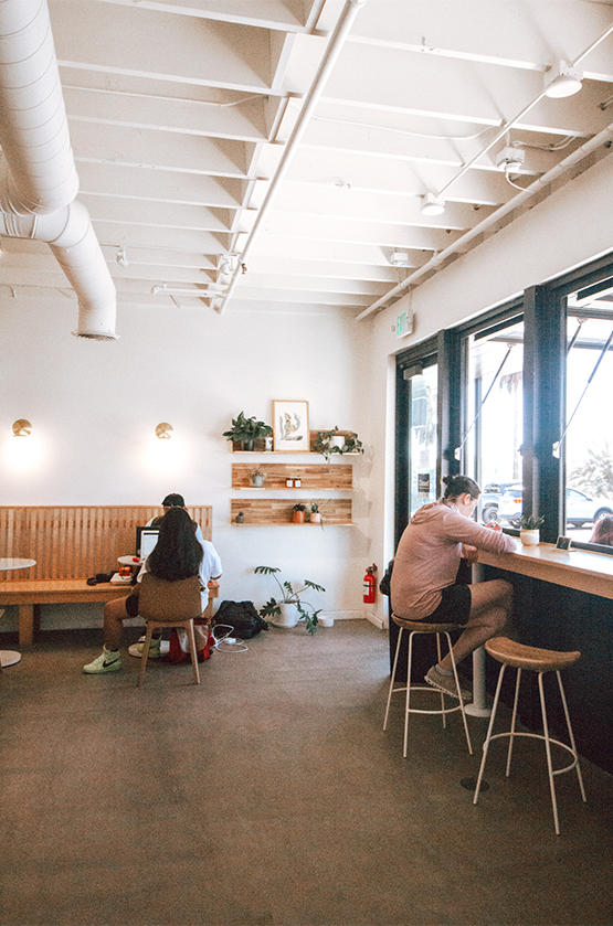 Though it originated on the east coast, Vigilante has found its west coast home here in Oceanside. Situated near the south end of the city, Vigilante’s open-air space hosts a spacious 2,000-square foot interior with high ceilings, a wall adorned with plants, and plenty of seating, plus 1,500-square feet dedicated to a roastery. The menu is extensive, offering classic espresso drinks (think lattes, macchiatos, and cappuccinos) along with fizzy, refreshing specialties like the Chronic Tonic, which features espresso laced with muddled orange floated over iced tonic water. A pastry case stocked with scones, croissants, cookies, and muffins sits right by the register, offering a tempting bite, and a few shelves of merchandise offer visitors the chance to take a little bit of world-class coffee home with them.