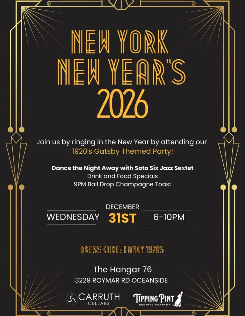 Hangar 76 is going full Gatsby this NYE! Jazz, bubbles, and a ball drop without that Times Square chaos. Dress snazzy, show up ready to dance, and welcome 2026 in style!