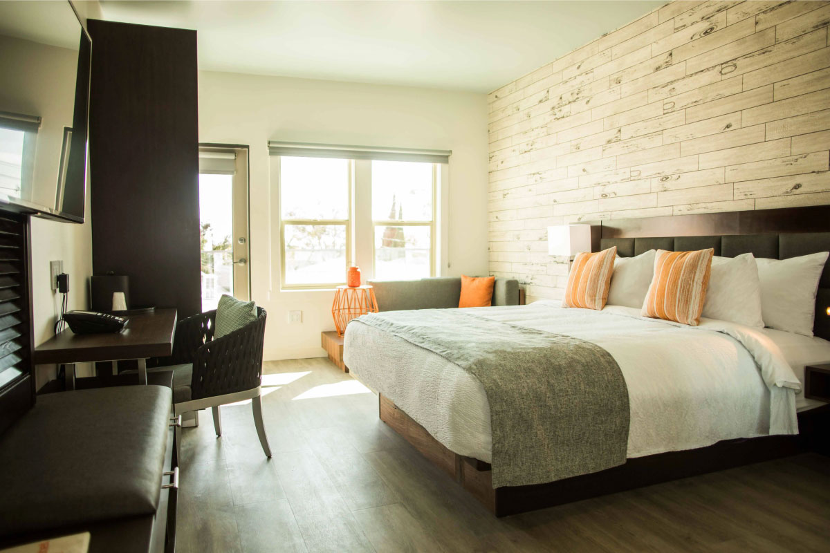 Part of the Tapestry Collection by Hilton, The Fin is a design-forward experience just four blocks from the beach. The building dates to the 1920s, but the boutique hotel’s chic style is utterly of the moment, with elegant and tasteful touches that make every guest a VIP. Find spacious king bed rooms and luxurious queens, with 300 thread-count sheets and 50” HDTVs for private lounging. Per diem rates for government and military are offered based on availability.