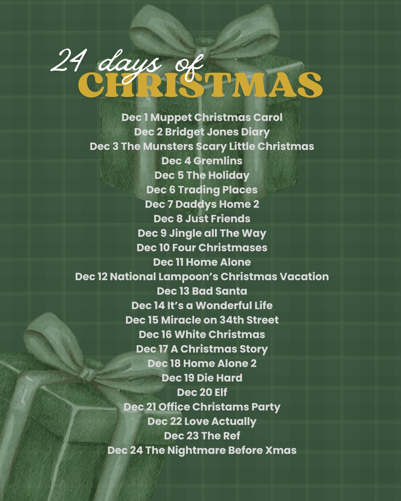 For the next 24 days you can sip your toddy & watch your favorite holiday move at Frankies 🎄